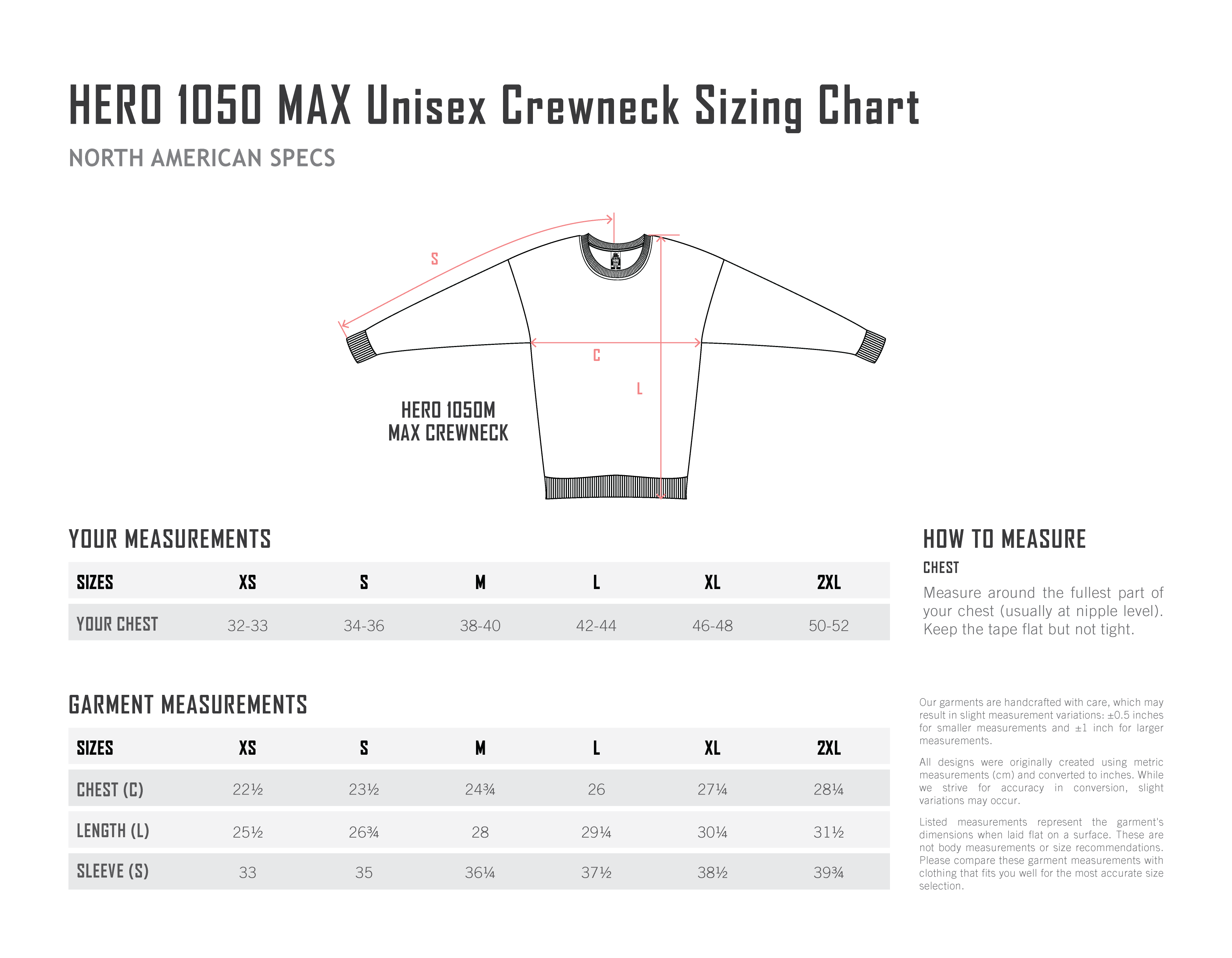 Chest (C) 22.5 in 23.5 in 24.75 in 26 in 27.25 in 28.25 in